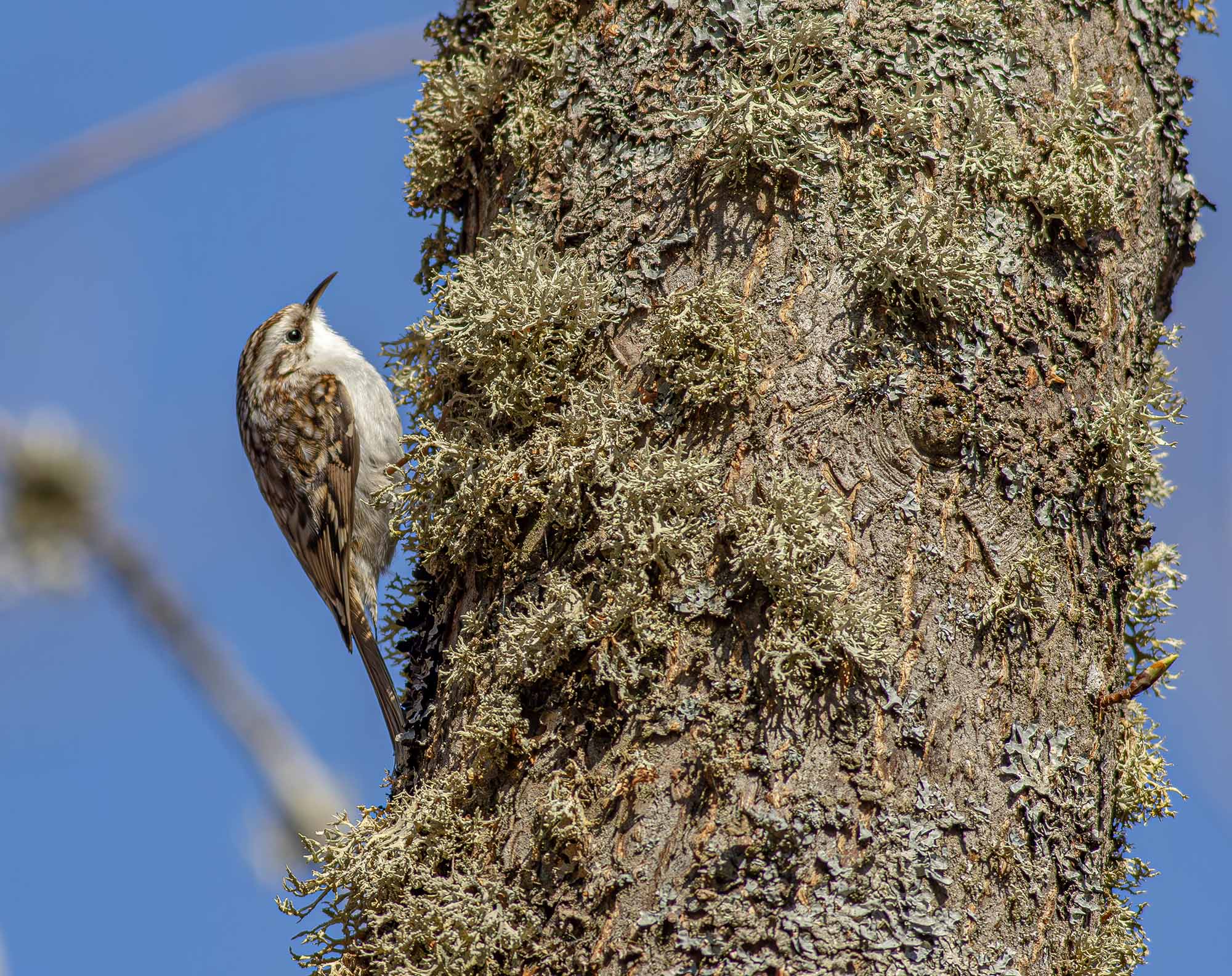 Trädkrypare ställde i alla fall upp. När den nådde trädtoppen och flyttade till nästa stam steg jag upp, gick till cykeln och trampade hem.